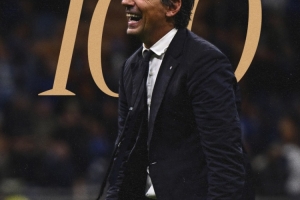 国际米兰官方社媒发布海报祝贺西蒙尼-因扎吉:蓝黑军团征程150场意甲执教斩获百胜。